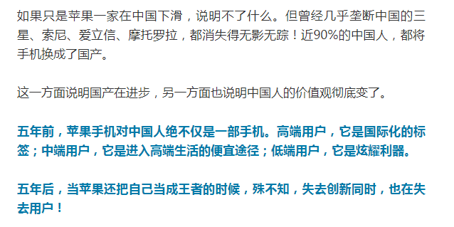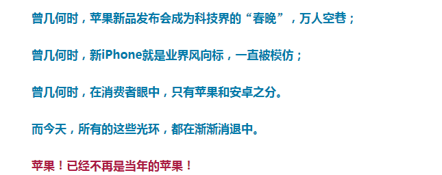 种种迹象表明,那个疯狂追逐苹果的时代就这样结束了!市场是最公平的裁判,谁在用心打造产品,谁在一味追求利润,不言而喻!