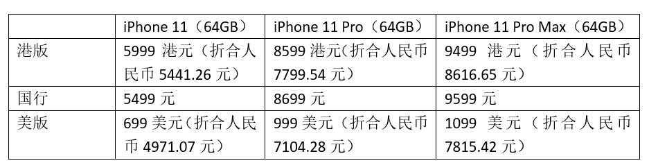▲苹果国行、港版、美版价格对比。数据来源:苹果官网